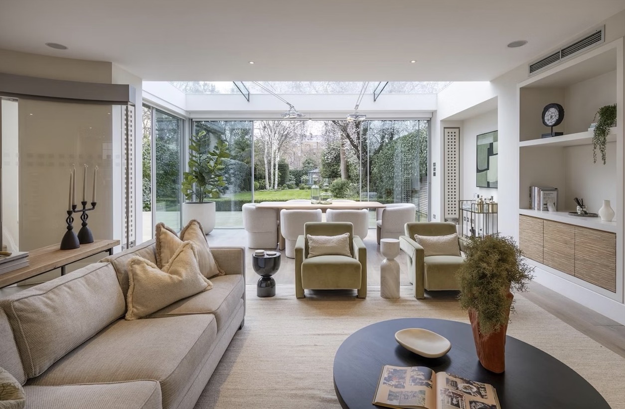 房产指导价为1,725万英镑,附带已获批的1,700平方英尺地下室扩建规划许可,未来可打造私人画廊或健身空间。
