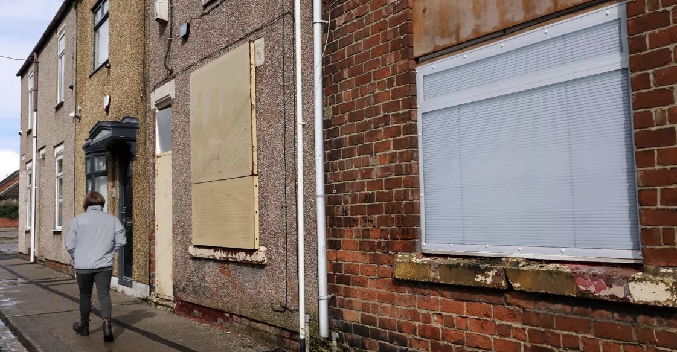 从外部拍摄的照片显示,房屋状况较为破败,窗户也被木板封住了。最早,这个地段是为附近煤矿工人建造的住宅区之一。