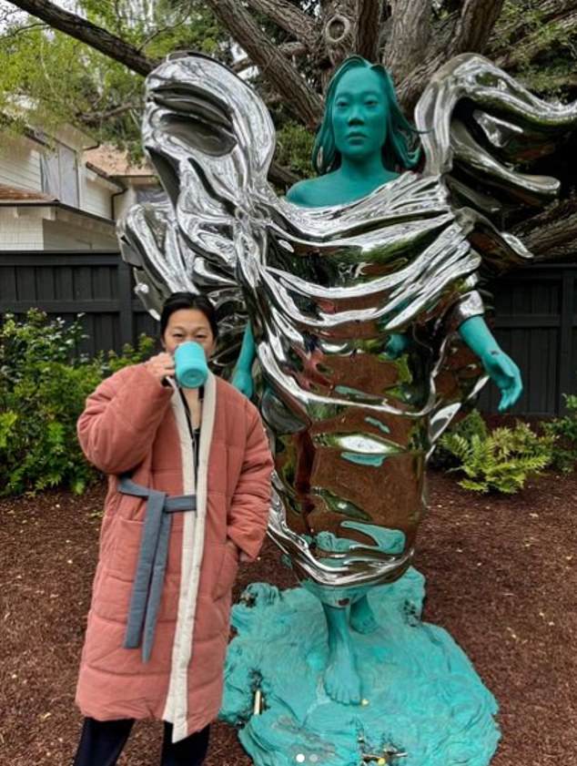最让人震惊的是——院子正中间竖着一尊七英尺高的Priscilla Chan的雕像!