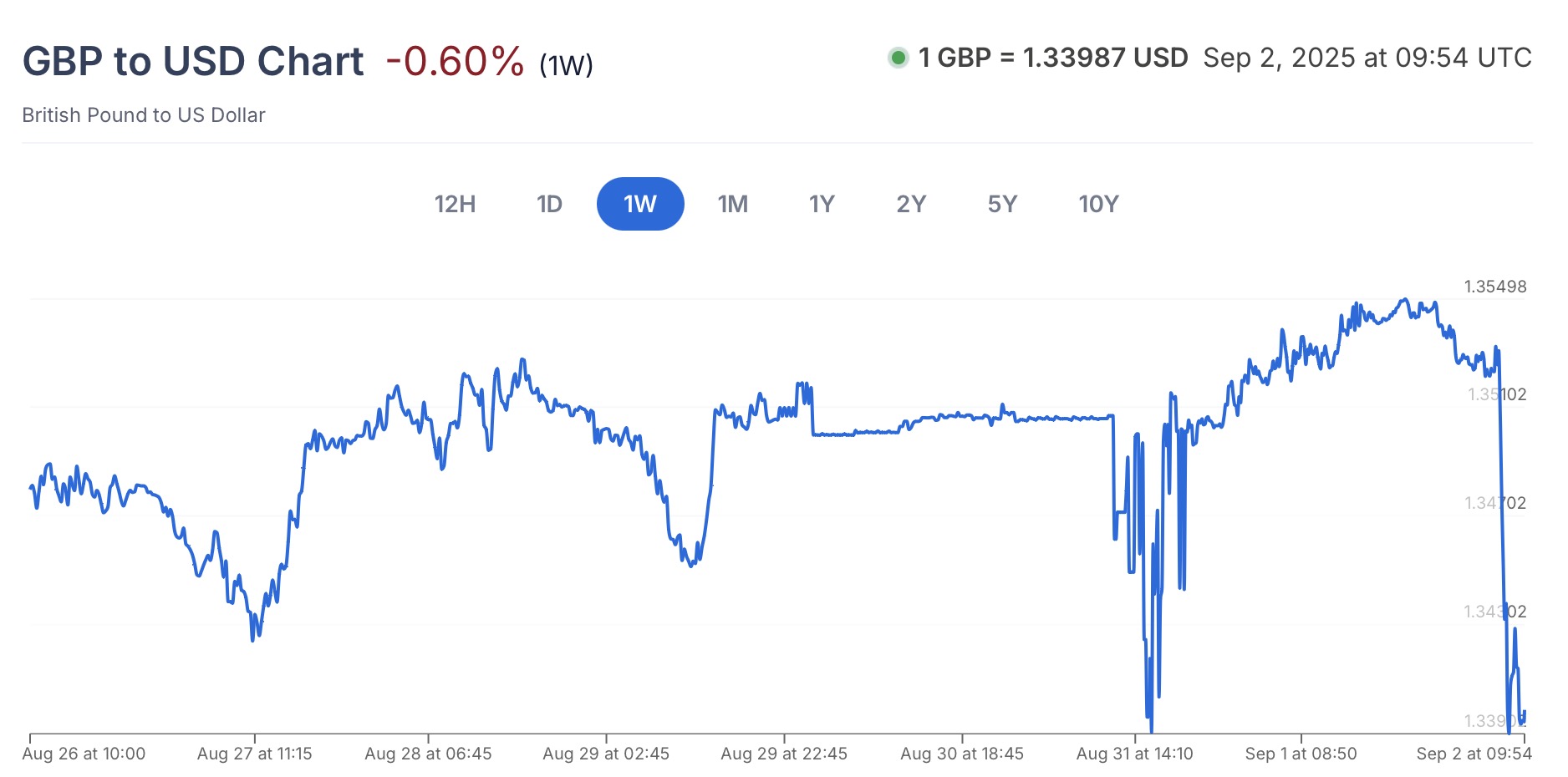 英国长期借贷成本飙至27年新高,英镑汇率承压下跌。