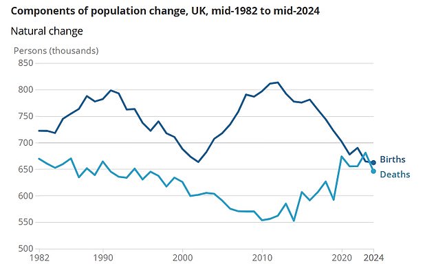 在自然变化方面,2023至2024年间英国共有 66.2万新生儿,比死亡人数多出1.62万人,这一差额在整体人口增长中占比有限。