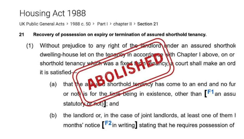 《租客权利法案》的核心举措之一,是正式废除《1988年住房法》(Housing Act 1988)中的第21条(Section 21)。该条款允许房东在无需给出任何理由的情况下,通过发出第21条通知来结束租约,这一过程通常被称为 “无过错驱逐(’no-fault’ eviction)”。废除第21条将带来以下根本性变化: