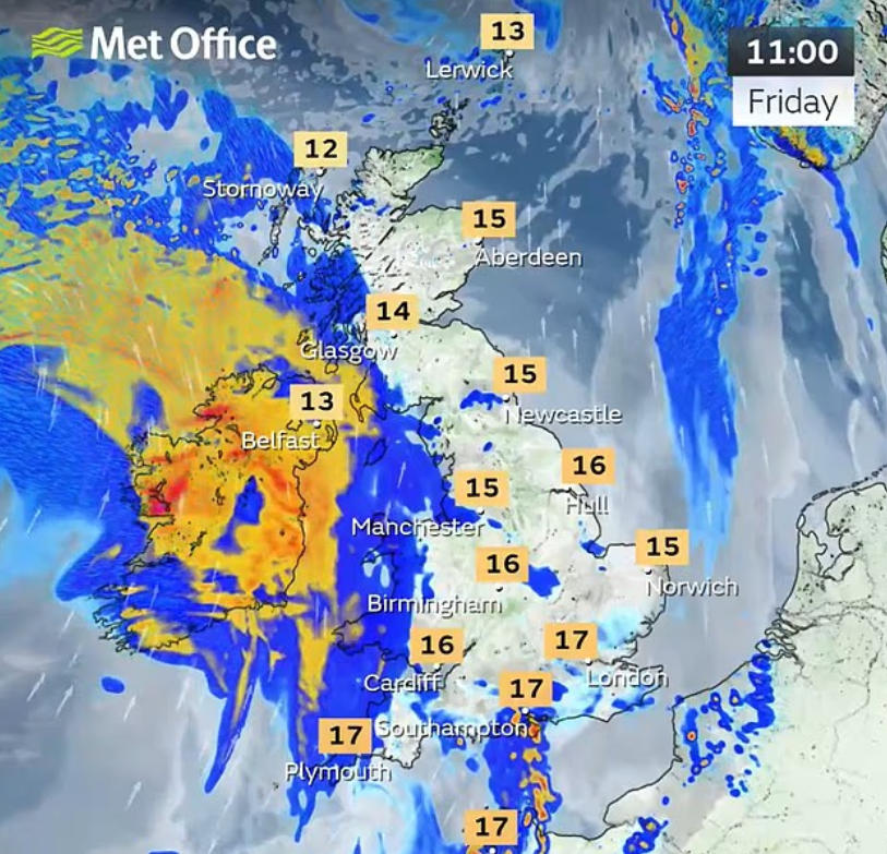目前,英国已将琥珀色与黄色天气预警范围扩大至英格兰、威尔士、苏格兰及北爱尔兰全境,生效时间从今日上午11点持续至周日早上9点。