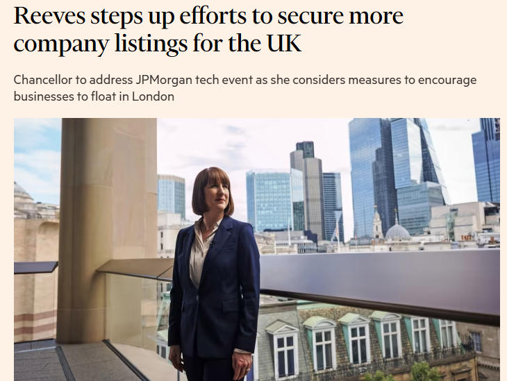 英国财政大臣雷切尔·里夫斯 (Rachel Reeves)将加大力度说服科技公司和投资者,证明英国是一个有吸引力的上市地点。同时,英国财政部正在考虑采取新措施,鼓励企业在伦敦上市。