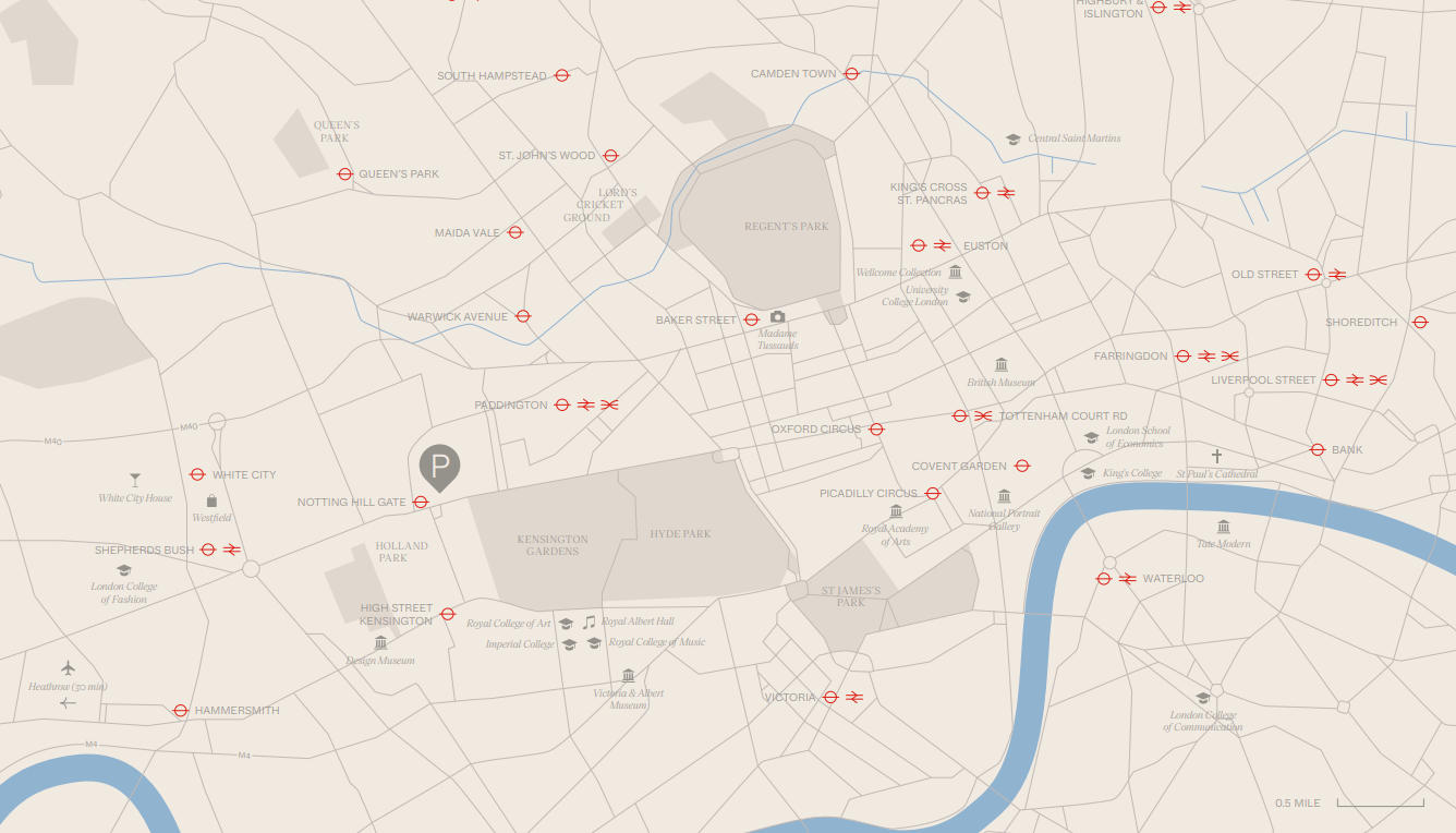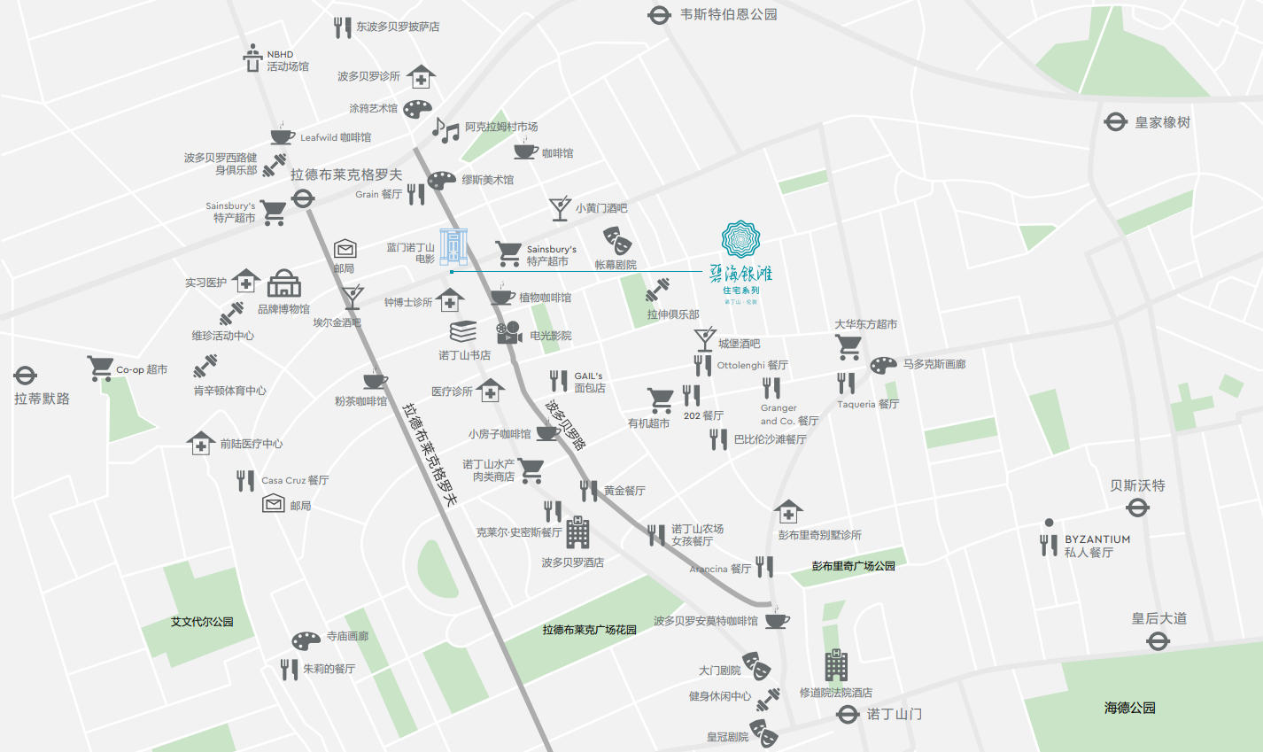 出行的便捷性进一步巩固了诺丁山的核心优势。该地有诺丁山门站(Notting Hill Gate)、拉德布罗克格罗夫(Ladbroke Grove)等多个车站。