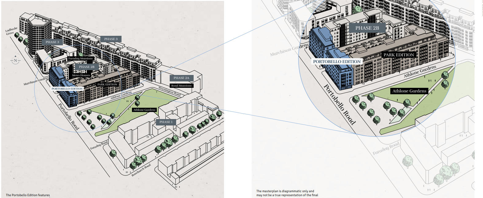 该项目旁边则是当地著名的波多贝罗路市场。在其步行范围内,还有海德公园、“亿万富翁街”肯辛顿宫花园等伦敦知名地点,地理位置十分优越。