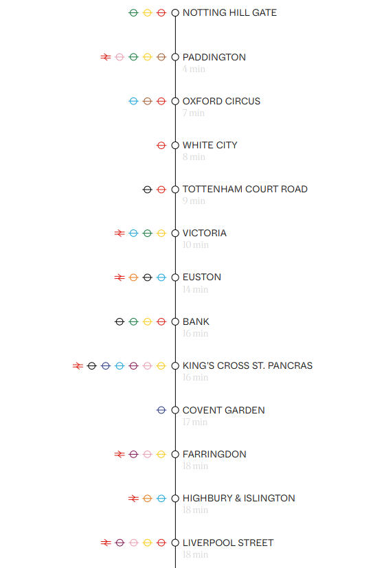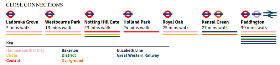 除诺丁山门地铁站外,该项目周边还有多个车站,可以轻松前往伦敦各处。