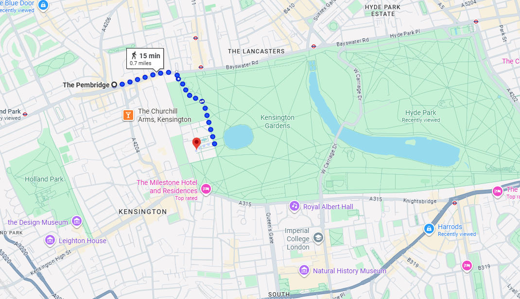 此外,荷兰公园、海德公园及肯辛顿宫等知名地标也均在步行范围内。