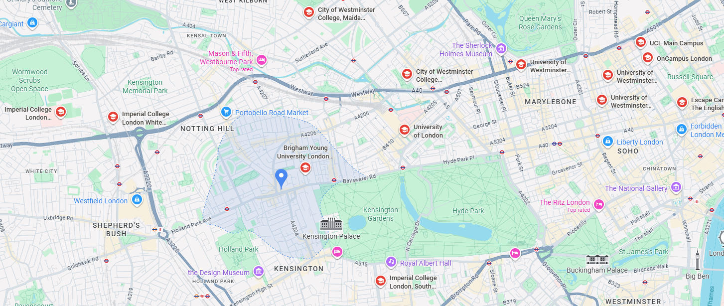 诺丁山隶属肯辛顿和切尔西区,周边皆为伦敦最高档的住宅区,属于实打实的黄金地段。该区域不仅是众多外交使馆、顶级博物馆和知名学术机构的所在地,更以其繁华的商业、卓越的生活品质与安全环境著称。