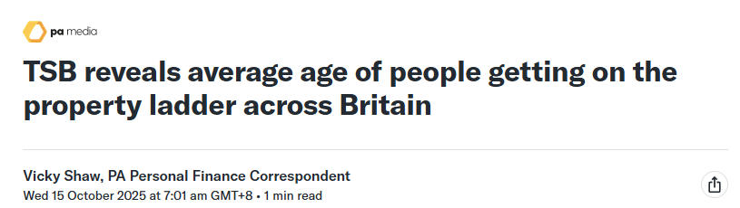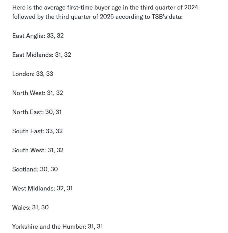 - TSB银行研究发现,过去一年英国首次购房者的平均年龄已从32岁降至31岁…