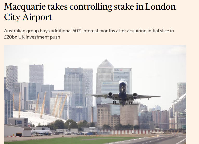 - 澳大利亚最大基础设施投资集团Macquarie已取得伦敦城市机场控股权…