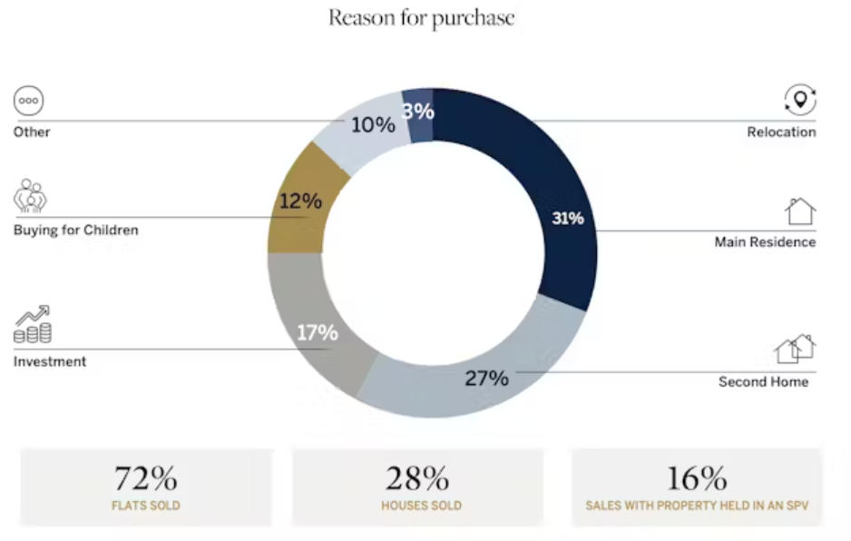 Sotheby’s表示,国际需求持续占据主导地位。本季度海外买家占交易总量的69%,主要来自美国、土耳其、法国、印度及海湾地区。租户中国际人士占比也达四分之三,其中超过半数的租赁由搬迁需求驱动。