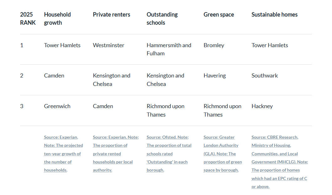 有趣的是,过去10年,伦敦房屋交付最多的地区是位于市中心的威斯敏斯特(Westminster),而人口增长最快的是陶尔哈姆莱茨(Tower Hamlets)。