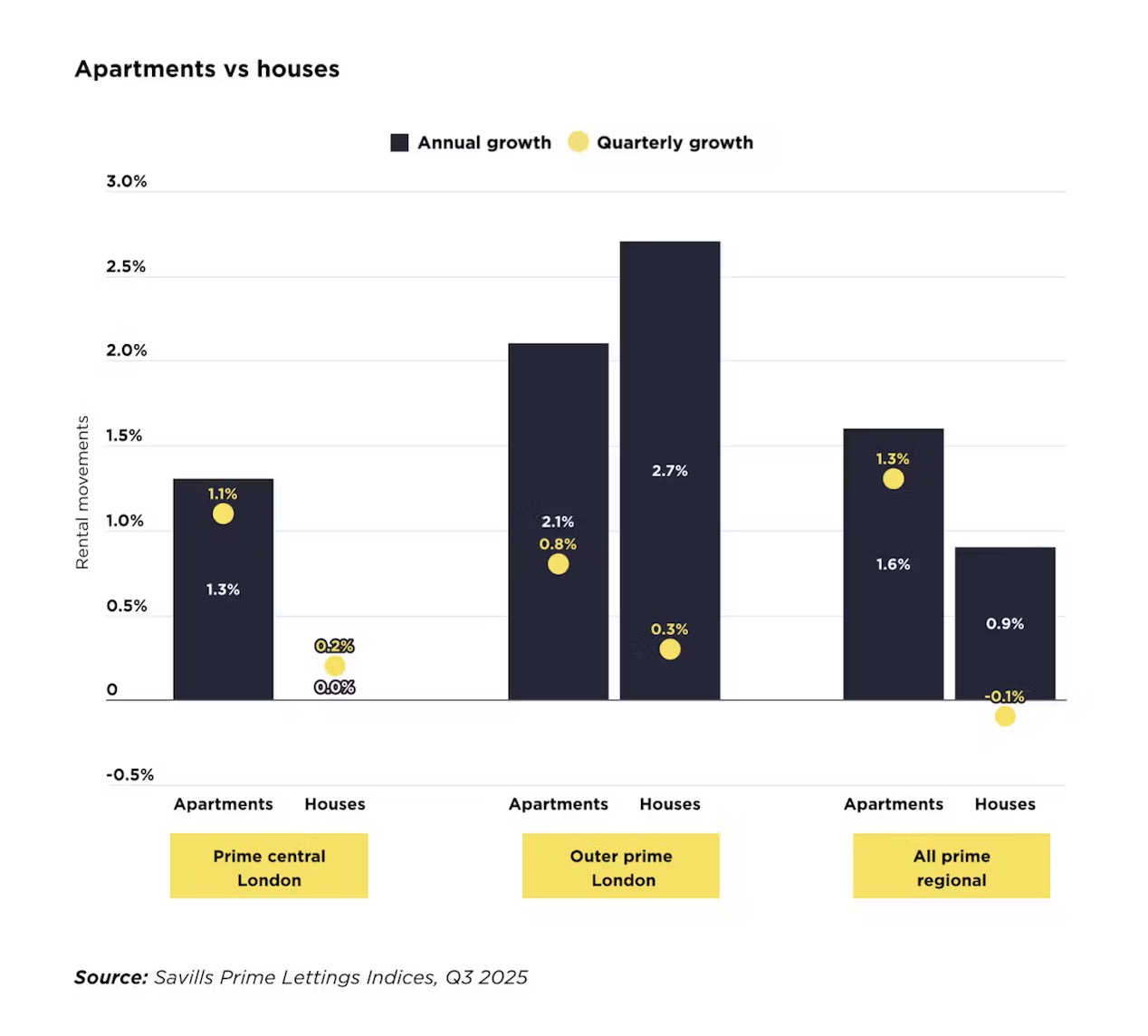 尽管新租赁法即将生效、监管环境趋紧,英国高端租赁市场(Prime Rental Market)在第三季度仍表现稳健,租金整体保持平稳增长。