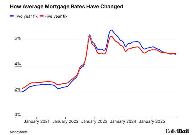 目前,两年期固定抵押贷款的平均利率已降至4.94%,五年期固定抵押贷款的平均利率已降至5.01%。