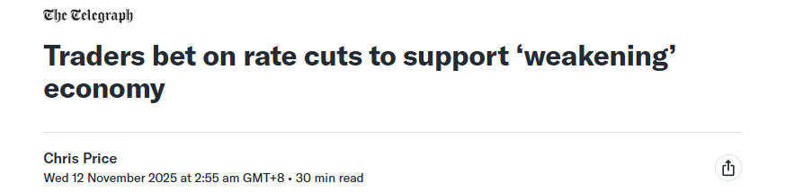 RSM UK首席经济学家Thomas Pugh表示:“私营部门薪资增长的进一步放缓,为12月降息打开了大门——只要预算案能如财政大臣上周暗示的那样起到通货紧缩作用。”