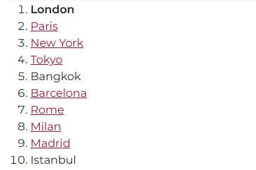 紧随其后的还有巴黎、纽约、东京和曼谷,但它们的搜索量最终不及伦敦。