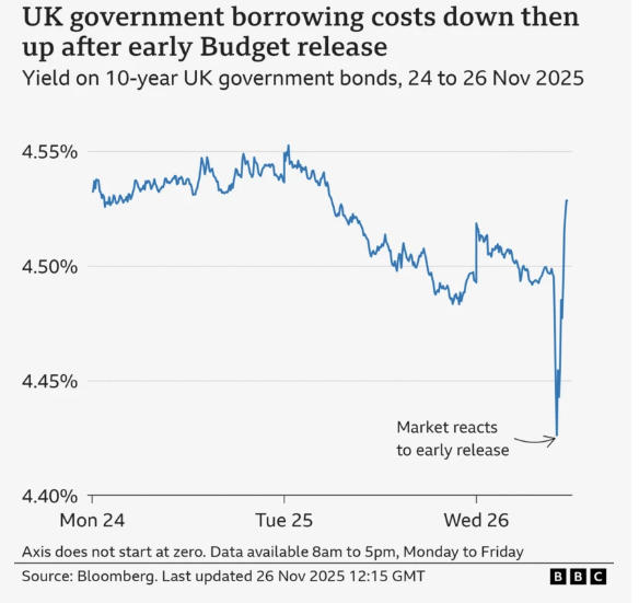 尽管OBR迅速删除了报告链接,但仍引发了金融市场的“短暂”波动,10年期英国国债收益率在迅速下跌后又再次回升。
