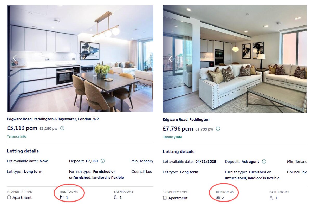 而从实际挂牌房源来看,租金水平甚至更高。部分1房月租金超过5,000英镑,2房超过7,000英镑。