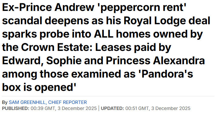 而在搬离温莎前,安德鲁与其前妻莎拉·弗格森(Sarah Ferguson)已经在这座豪宅中免租居住了二十年。随着这份“超值租约”曝光,公众质疑的声浪也越来越大。