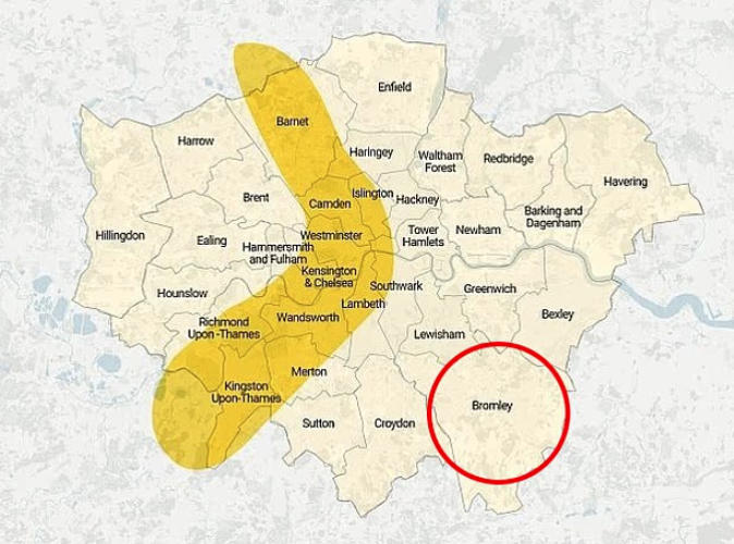 不过,随着这张图的疯传,很多非香蕉区的居民也渐渐坐不住了,有人觉得自己的居住地其实被严重低估!而这其中呼声最大的就是来自布罗姆利(Bromley)的居民。