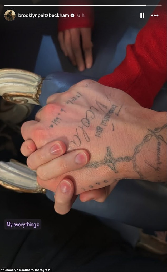 圣诞前夜,布鲁克林在Instagram发了一张和尼古拉牵手的照片,配文只有两个字:
