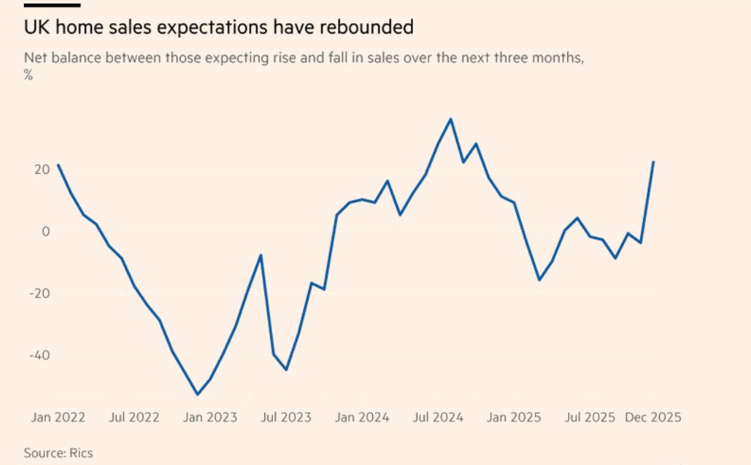 根据英国皇家特许测量师学会 (RICS) 12月份的调查,房地产专业人士对未来三个月的销售预期升至2024年10月以来的最高水平。