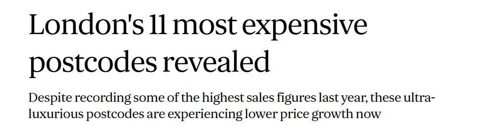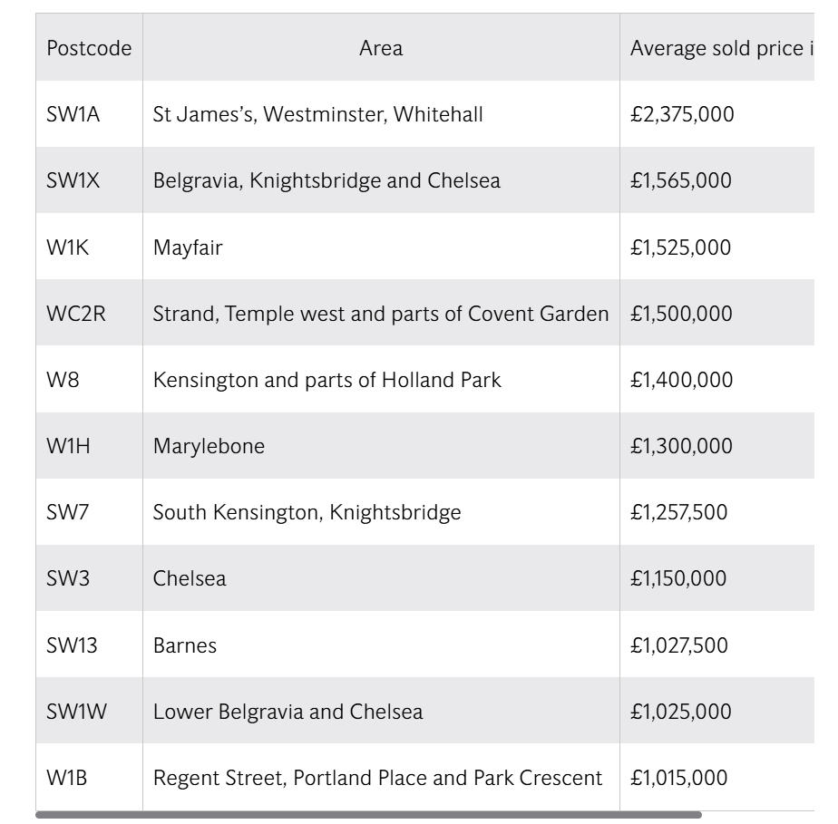 - 伦敦最昂贵的邮编区揭晓,SW1A邮编区拔得头筹,平均售价为237.5万英镑…