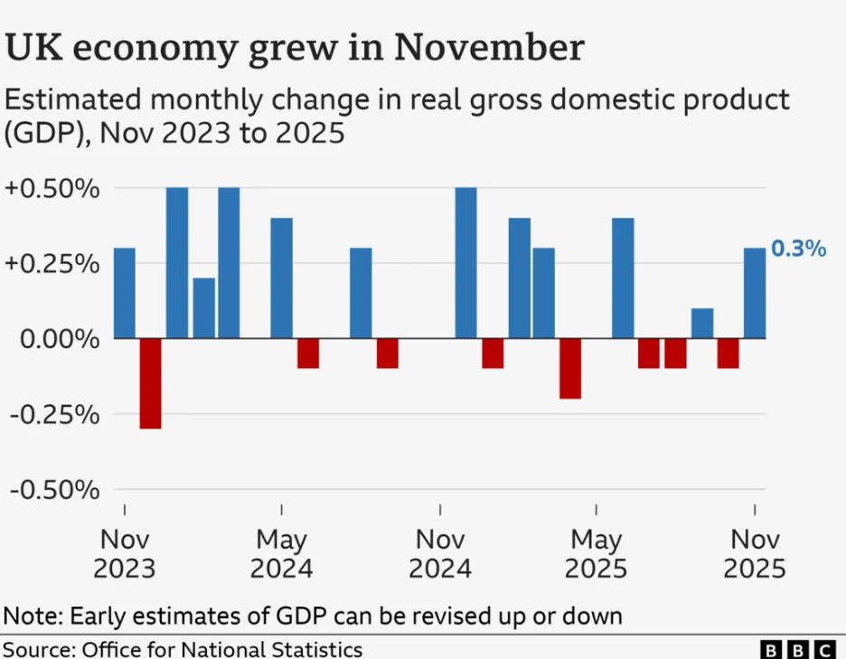 - 随着汽车生产反弹及服务业提振,英国2025年11月经济增长0.3%,超出预期…