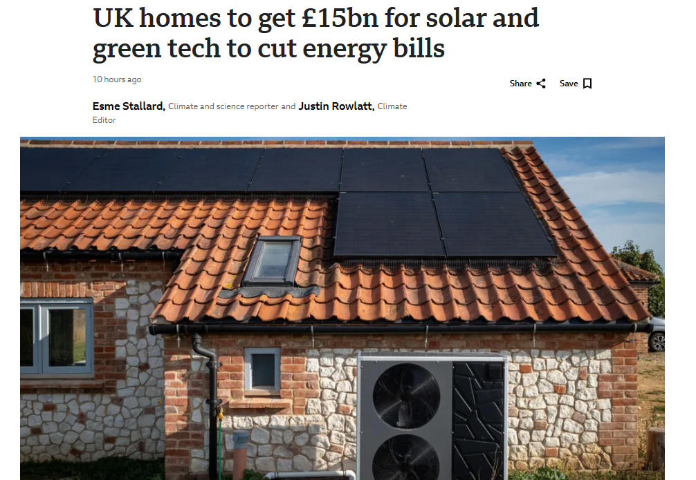 - 英国政府宣布,家庭将有资格获得价值数千英镑的太阳能电池板及其他绿色技术,以降低能源账单…