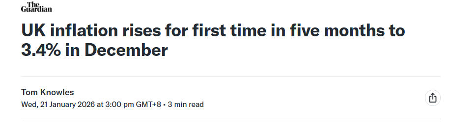 - 去年12月,英国通胀率出现五个月来首次上升,市场押注六月份进一步降息…