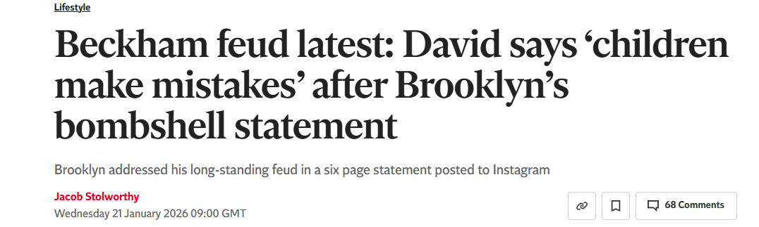 - 贝克汉姆打破沉默回应儿子:“父母必须允许孩子在社交媒体上犯错”…