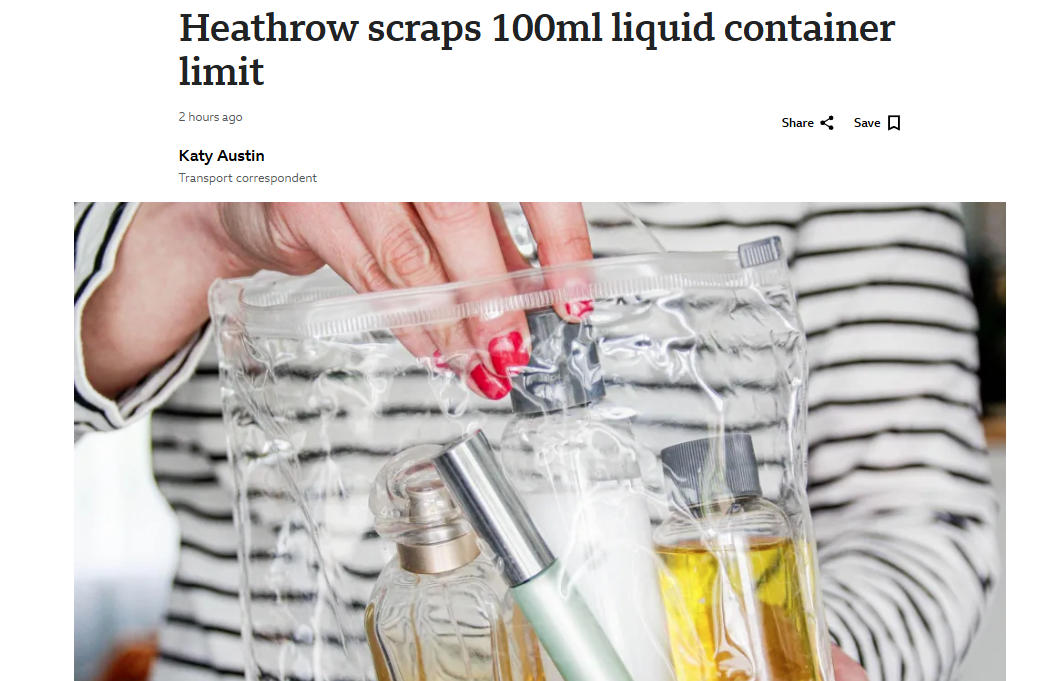 【希思罗机场取消100ml液体限制】