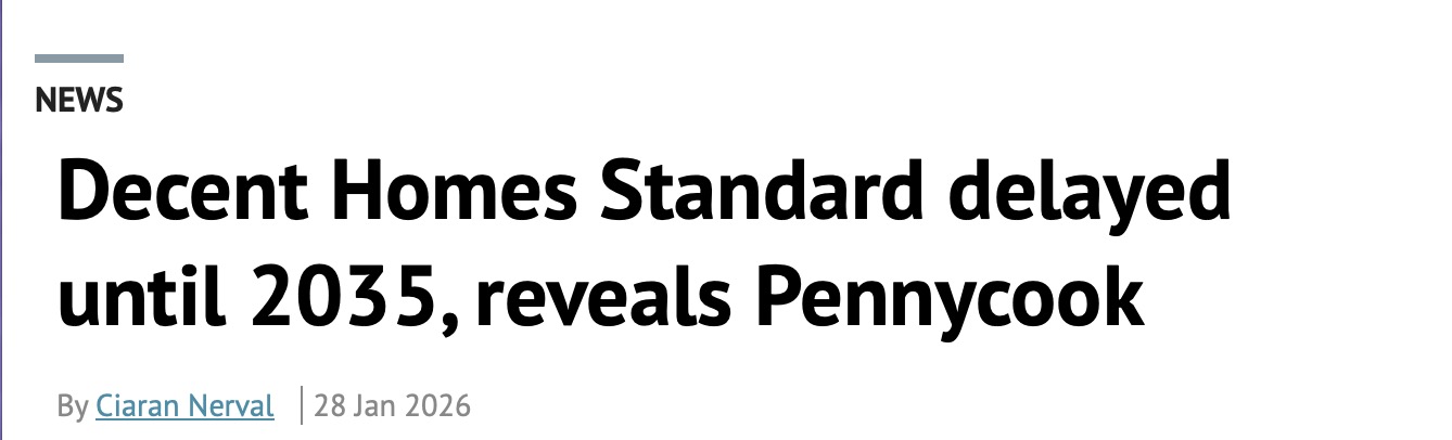 新的住房标准(Decent Homes Standard)将推迟到2035年才强制执行。