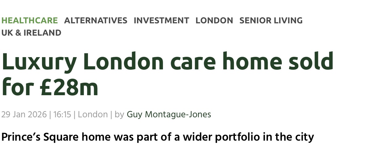一家位于伦敦的豪华养老院以2,800万英镑的价格成交,反映出高端养老地产市场的强劲需求。