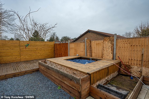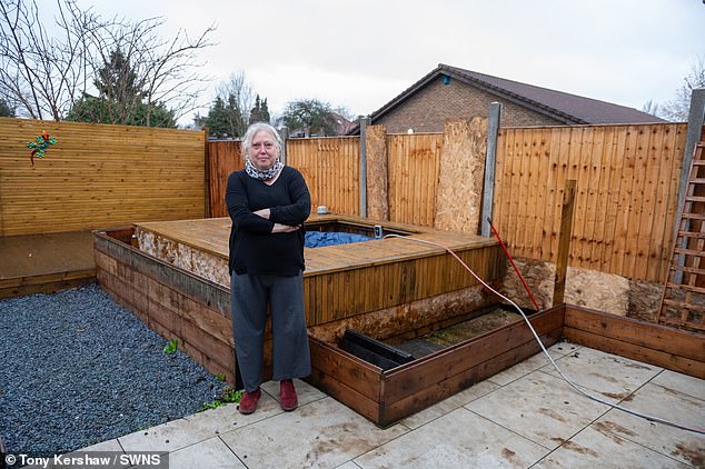 为了迎接自己60岁的生日,她花了整整五个月、1.25万英镑,把自家花园尽头改造成了一个梦想空间——铺上木地板,装上热水浴池,只想以后能和家人、孙辈在花园里放松一下。