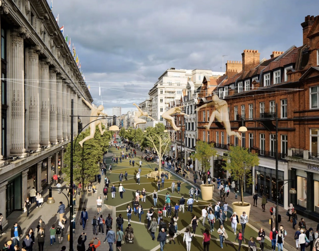 宣布牛津街步行化方案将于今年夏天启动施工,目标是在2026年底前实现从Great Portland Street到Orchard Street约1.1公里路段的全面无车化。