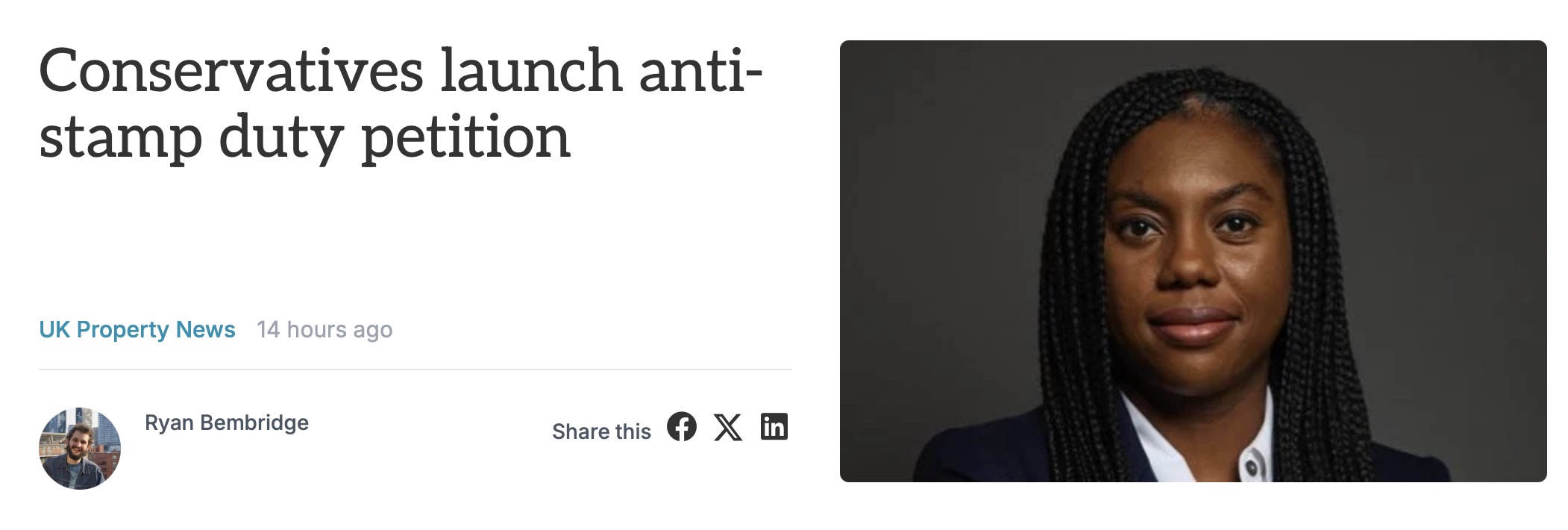 保守党党魁Kemi Badenoch近日正式发起请愿,要求废除主要住宅的印花税,并在政策主张中延续了去年10月党代会的核心立场。