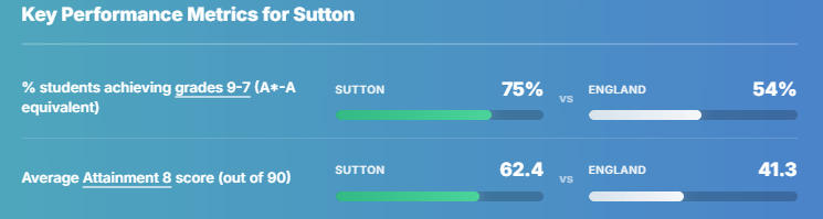 总之,在萨顿,无论是追求学术卓越的家庭,还是希望孩子在包容、全面的环境中成长的家庭,都能找到心仪的答案。这里既有顶尖的文法学校,也不乏理念先进、成绩斐然的综合学校,真正做到“各有所长,各得其所”。