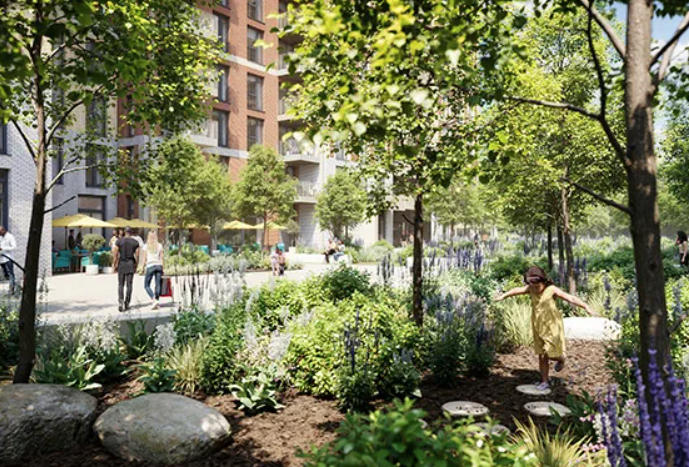 伦敦萨顿花园广场围绕一英亩景观花园建设,充分体现自然人居的理念。