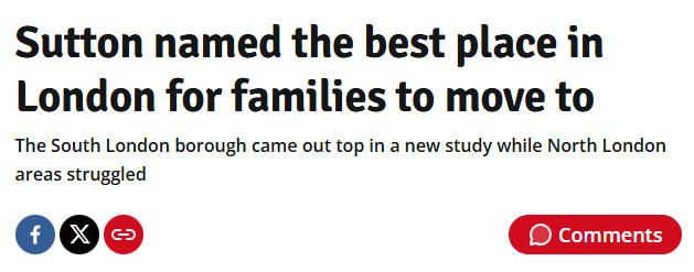 近十年来,当地人口增长了9.6%,持续的人口流入为住房市场提供了长期稳定的支撑。eMoov就曾在调查中指出,萨顿是首都房产出售最快的地方之一,从侧面印证了当地价值的稳固与安全。