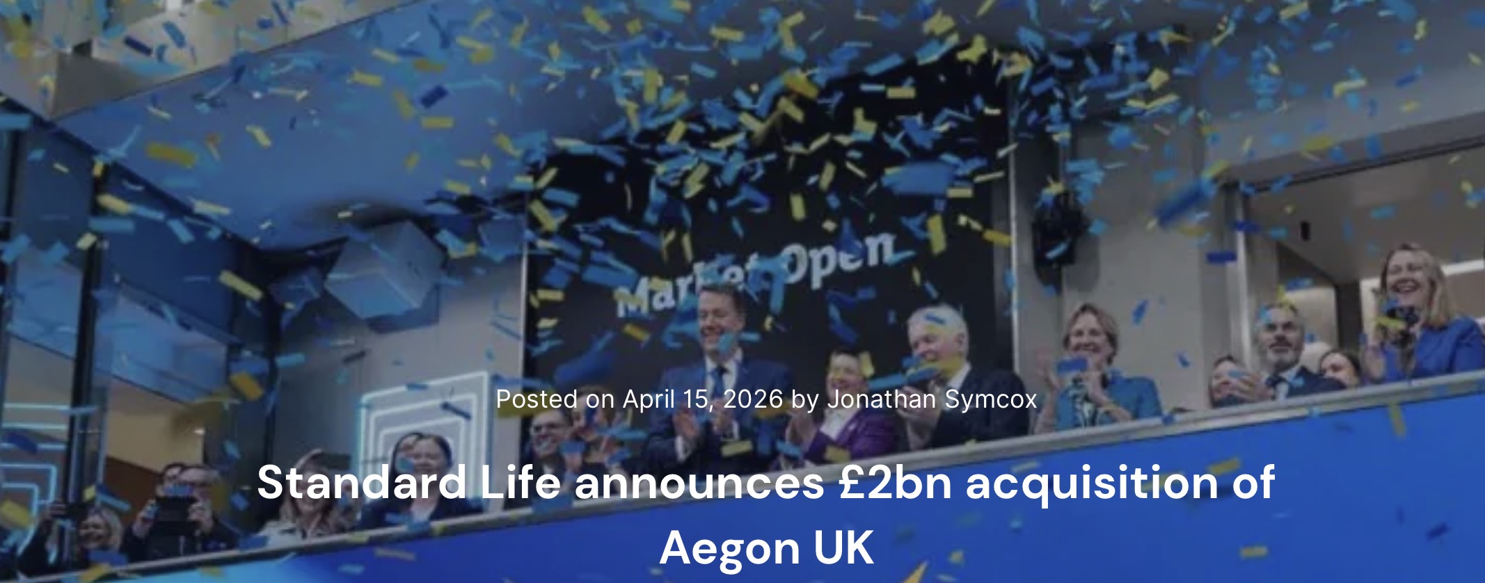 Standard Life宣布以20亿英镑收购Aegon UK,交易预计于2026年底完成,仍需监管机构审批。