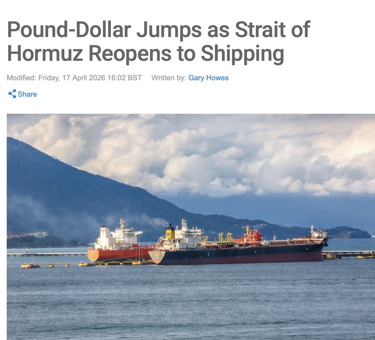 - 霍尔木兹海峡重开,油价暴跌逾11%,英镑走强