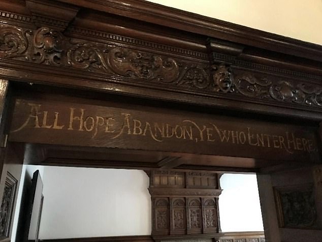 门上还刻着他的格言,壁炉边还有他的姓名缩写,书房里依稀可见当年的影子。