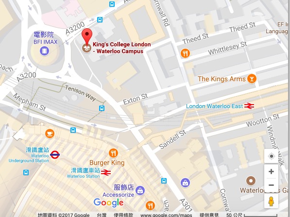而主校区Waterloo,周围的地铁站有London Waterloo East,Waterloo Underground,Southwark等。