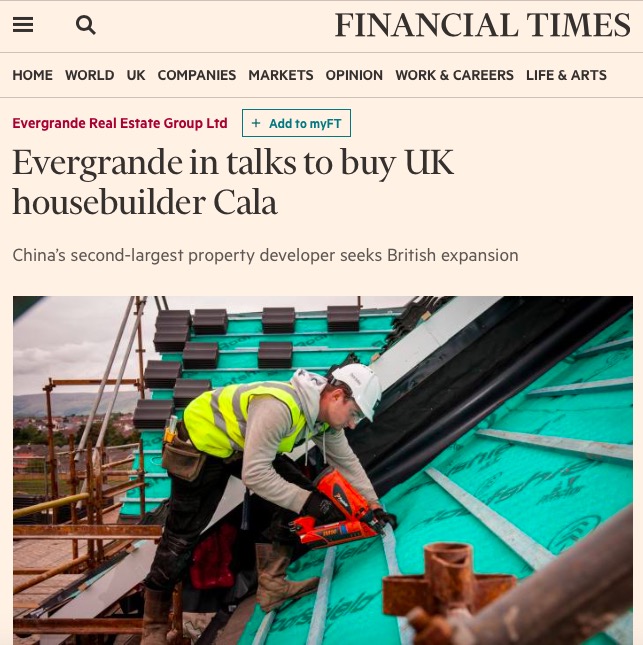 当年底,恒大集团准备收购英国房地产开发商Cala Homes。