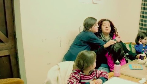 孩子们在家接受教育,卡伦妈妈就是老师,因为她已经教了四十多年书了
