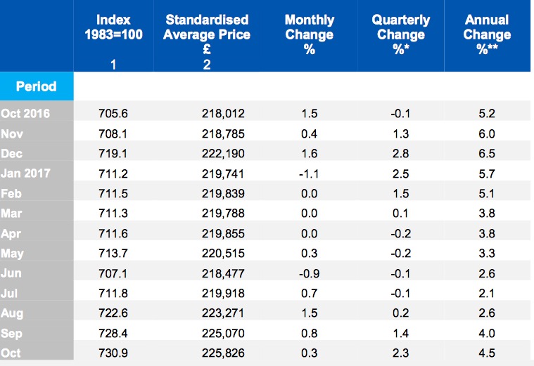 2016年10月到2017年10月,英国房价同比上涨了4.5%