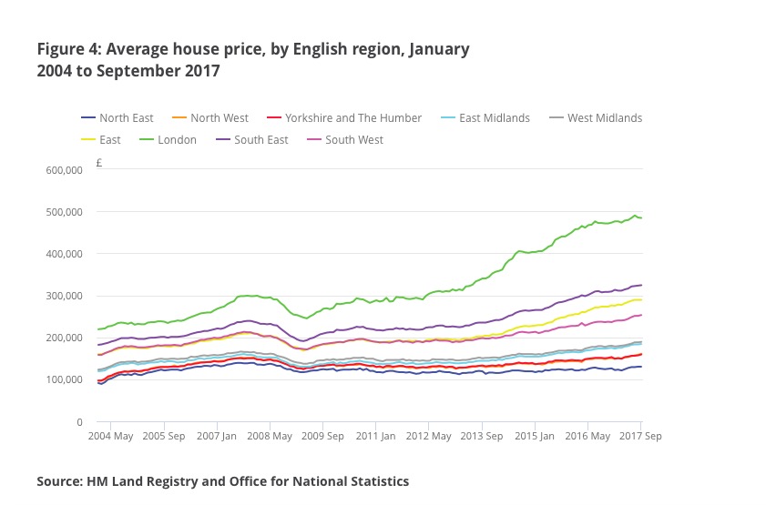 2017年10月,英国平均购房价格为225,826英镑,达到了历史上的最高价格。