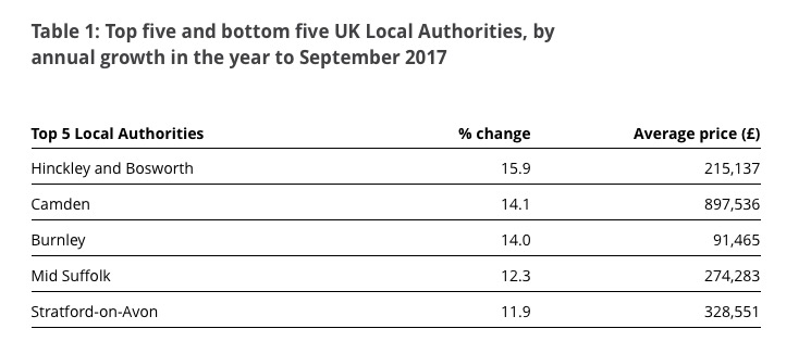 第一名是位于伯明翰东北部的一个叫Hinckley and Bosworth的地方,年涨幅15.9%